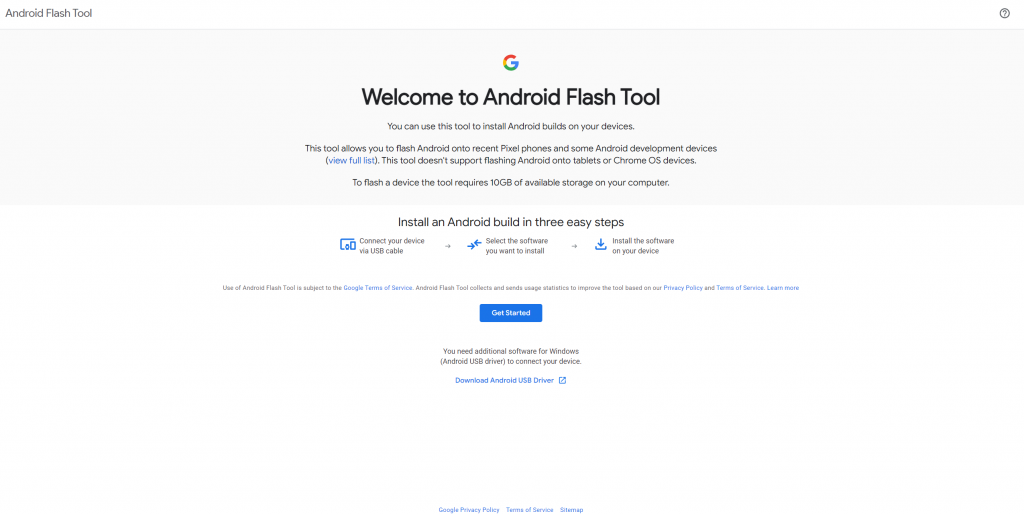 Pixel5的线刷过程是在浏览器网页上进行的,Google为Pixel手机准备了一个官方刷机网站:https://flash.android.com/welcome。不需要第三方工具即可刷机