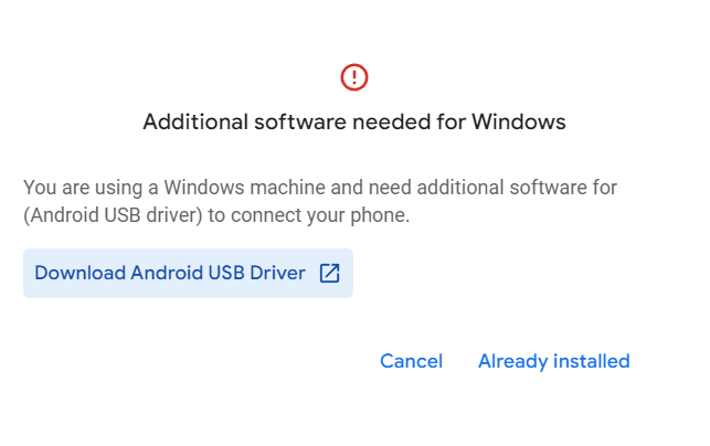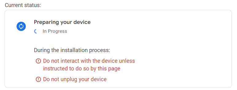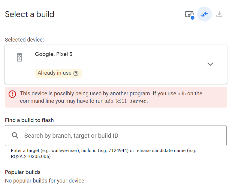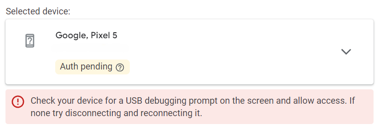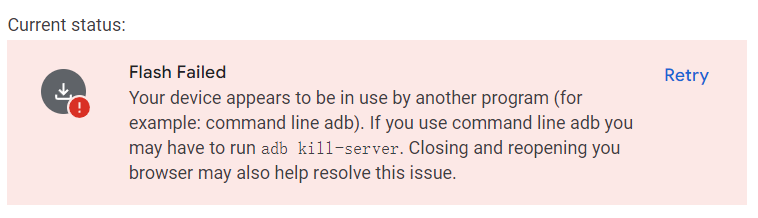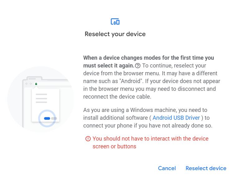网页显示需要重新选择设备,我们按照提示重新在Chrome里连接上Pixel就可以进行下一步