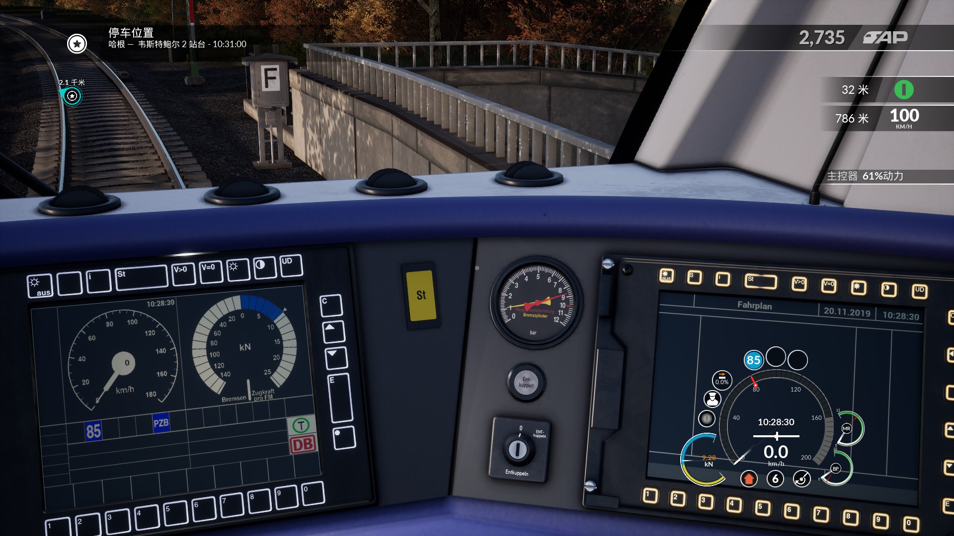 在列车速度低于0.5km/h时,会自动施加约30%的制动力让列车停下,各位喜欢低速滑行对标的要注意一下,停车后会完整施加制动。