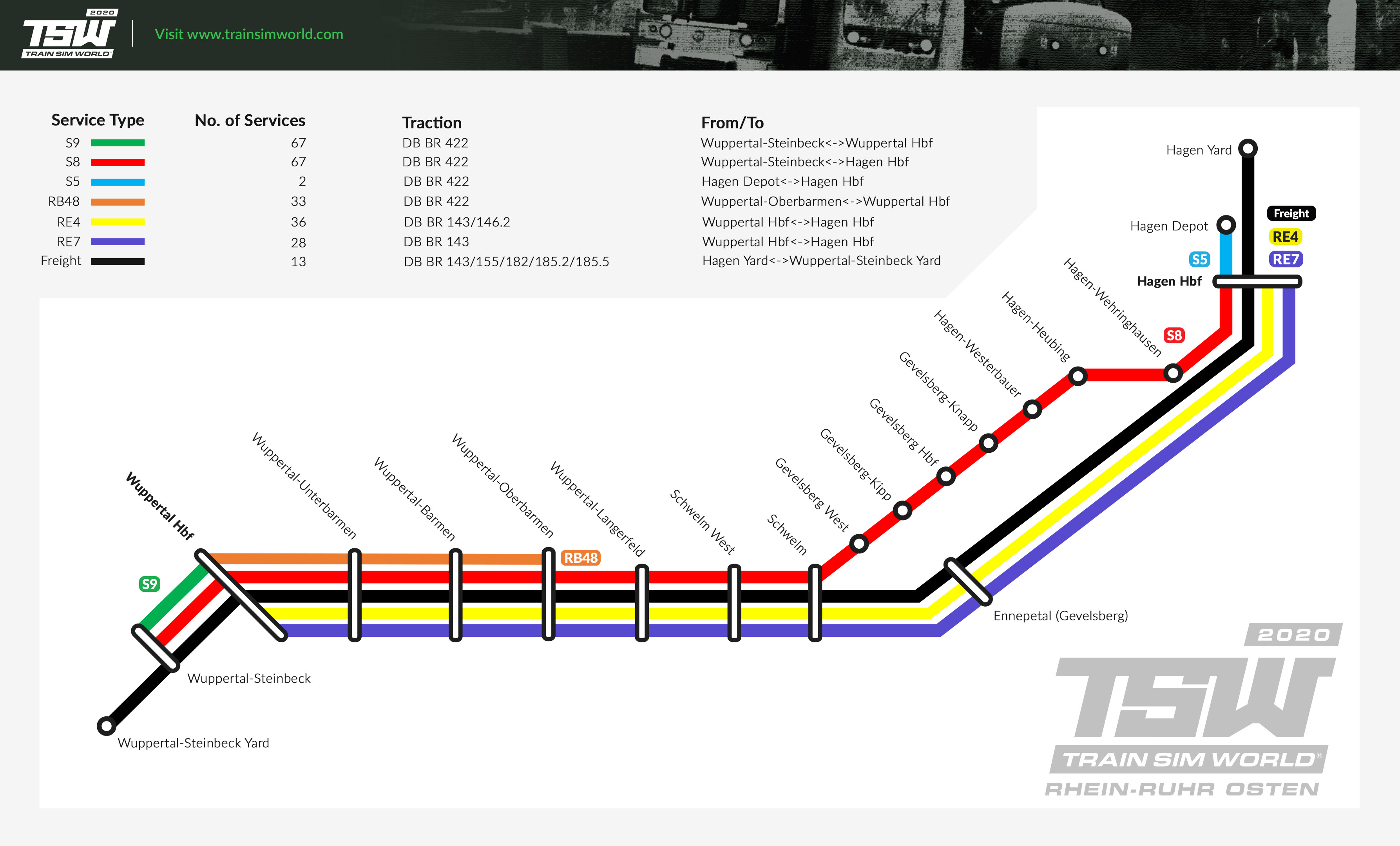 DTG还是那个DTG,半岛走廊发售仅两个月后就给我们带来了全新的德铁DLC——莱茵鲁尔东线(伍珀塔尔——哈根),全程约30km,路线虽然较短但制作了与RE正线平行的S-Bahn城市快铁线,算是一定程度上补足了路线短的缺陷,由于个人印象中90元的DLC坑比较多,因此这次的定价让我不得不为这个路线的质量捏了一把汗,本着再相信DTG最后一次的信念预购了本DLC(你每次都这么说的),没想到质量倒是出奇的不错。