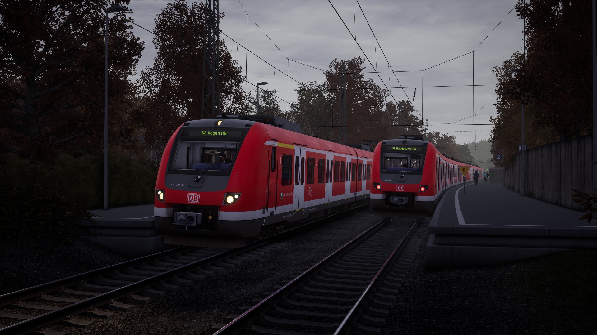 整条莱茵鲁尔线的布景和精细度相当不错,处于中等偏上的水平,虽然没有鲁尔锡根路线那般优良,但比起上一个德铁路线——施佩萨尔特主干线好了不少,没有出现远处景物消失,仅剩光秃秃地表的问题,哈根车站与鲁尔锡根线中的哈根站基本一致,不过路线总长较短,S8站站乐总共跑下来也不过40分钟,更不用提行驶在正线的RE快车和货运专列了,当你驾驶状态渐入佳境的时候,你早已到达了哈根站,结束了行程,这种不畅快感或多或少还是留下了一丝遗憾,明明哈根站另一端就是鲁尔锡根线路,不知什么时候TSW才能打破DLC与DLC之间的次元壁呢(做梦)。